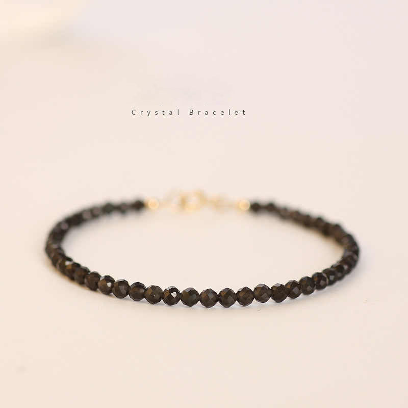 Black Obsidian Crystal Bracelet – 2mm/3mm/4mm Faceted Beads for Grounding and Protection