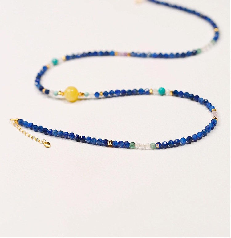 Starry Night Lapis Lazuli Convertible Necklace & Wrap Bracelet – Yellow Agate & Amazonite Energy Jewelry